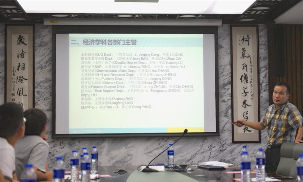 接着,林秋泉主任对经济学科党委、行政及各系(所、中心)的组织架构,以及教学、思想意识、科研、行政服务等相关规章制度作了简要说明,提醒新入职教师应注意的事项,强调两院的有关纪律和需要他们支持参与的事务。