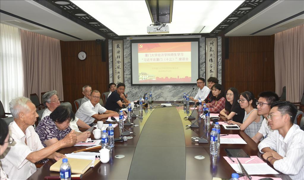 这其中的一些经历,不仅引发了厦门大学经济学科老教授们的集体回忆,也让年轻的厦大经济学科师生备受鼓舞。学院党政领导班子高度重视,当天下午,就立即组织经济学科师生代表齐聚学院N501会议室召开学习《习近平在厦门(十三)》座谈会,畅谈学习感受和体会。