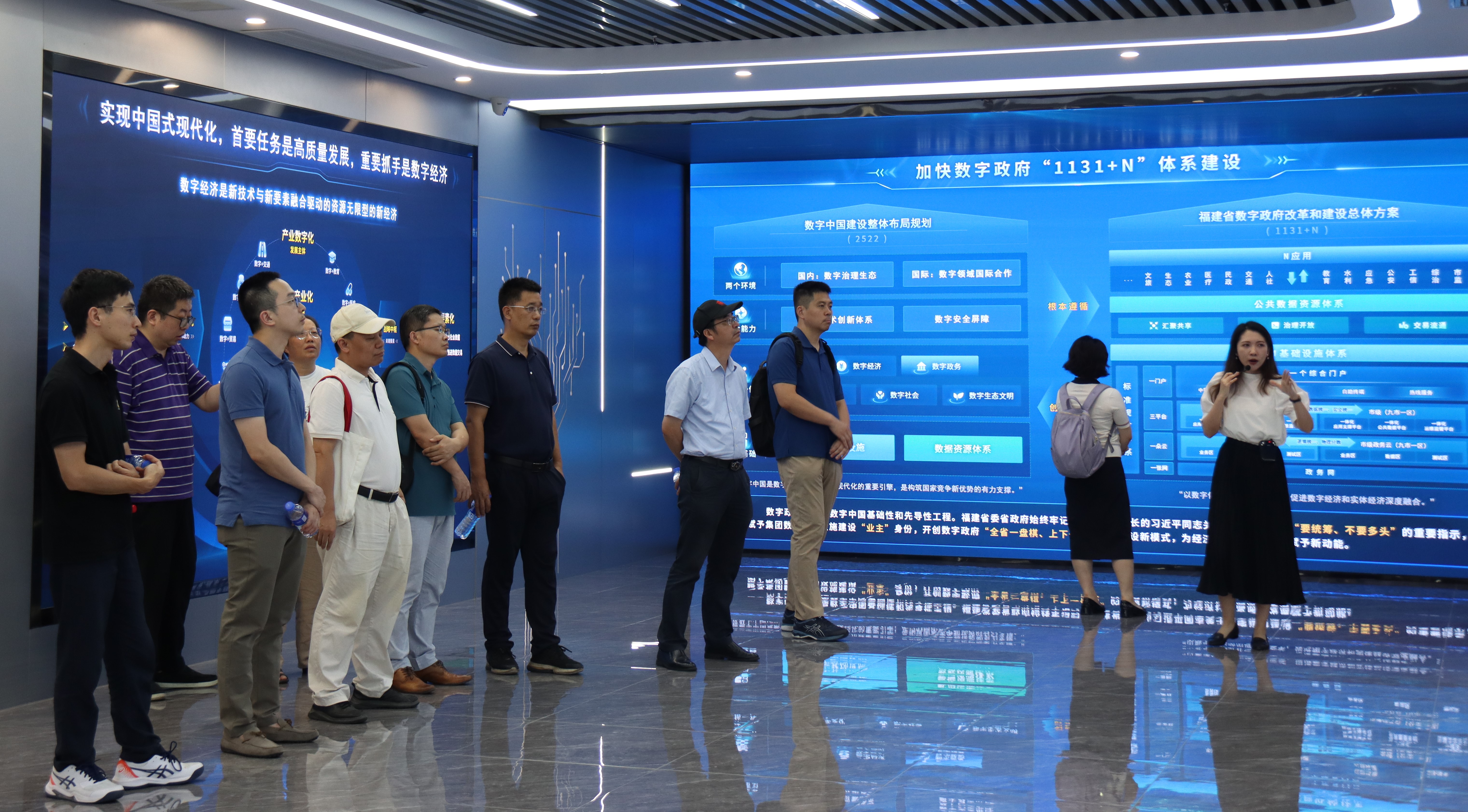 7月20日下午,实践教学团队一行11人抵达福建省大数据集团数字政府展示中心。福建省大数据集团有限公司是全国率先成立的省级国有全资大数据企业,负责省级电子政务网络、云、平台等系统的建设和运维,是全省公共数据资源一级开发主体,也是全省数字经济发展的市场化、专业化主体及主要投融资平台。在工作人员的详细介绍中,大家深入了解了我省在电子政务、数字经济、智慧社会等方面取得的显著成就。